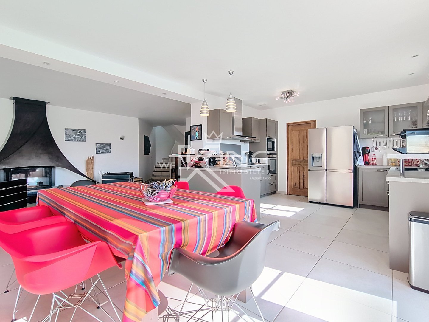 Elle se compose au rez-de-chaussée d'une entrée, d'un spacieux salon-séjour avec cheminée design en acier, d'une cuisine moderne, de baies vitrées à galandage donnant sur une superbe terrasse, d'un cellier et d'une suite parentale avec salle d'eau (douche à l'italienne) et terrasse.