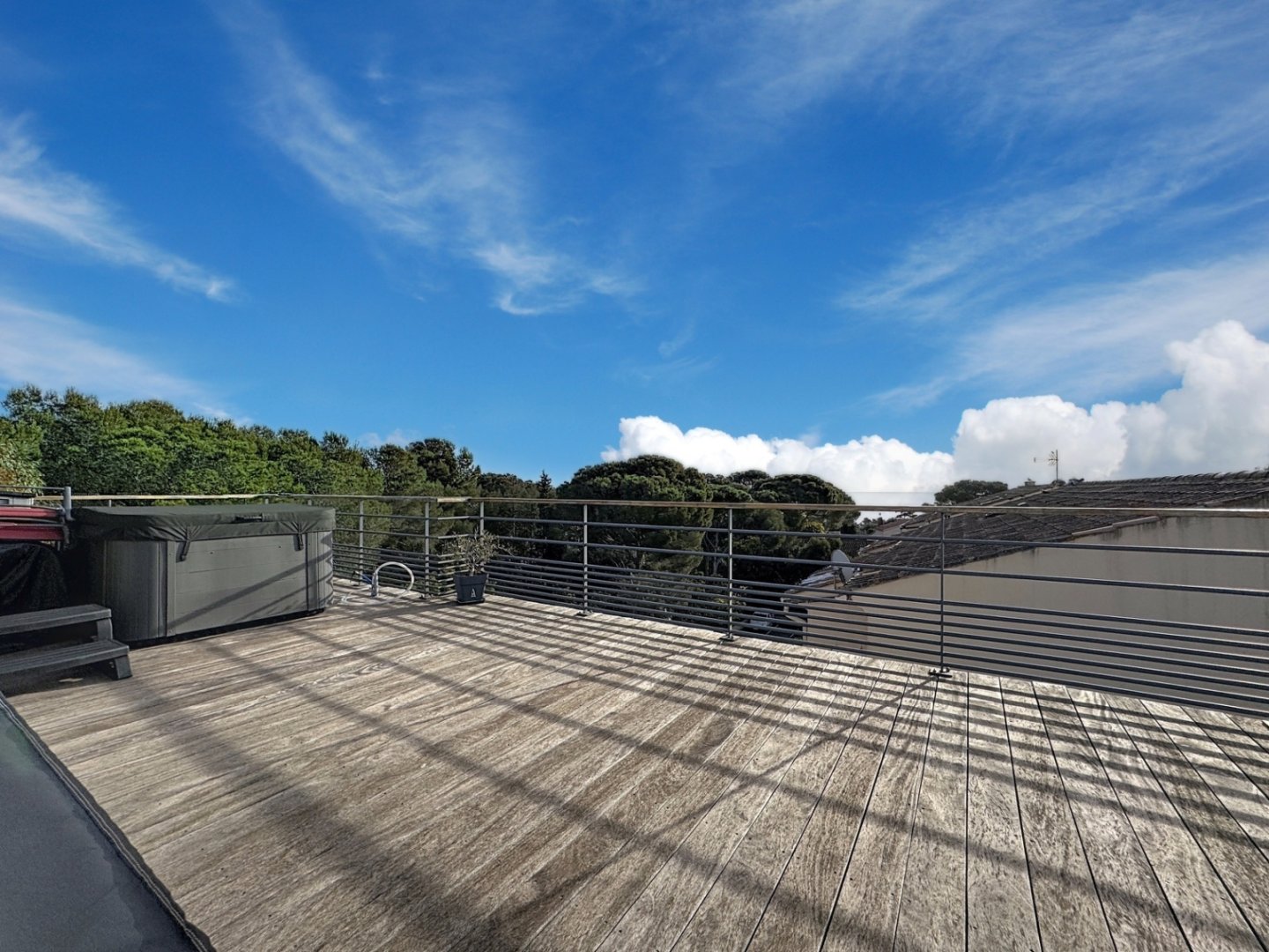 À l'étage supérieur, un solarium privatif de 86 m², équipé d'un jacuzzi, permet de profiter de véritables moments de détente en toute intimité.